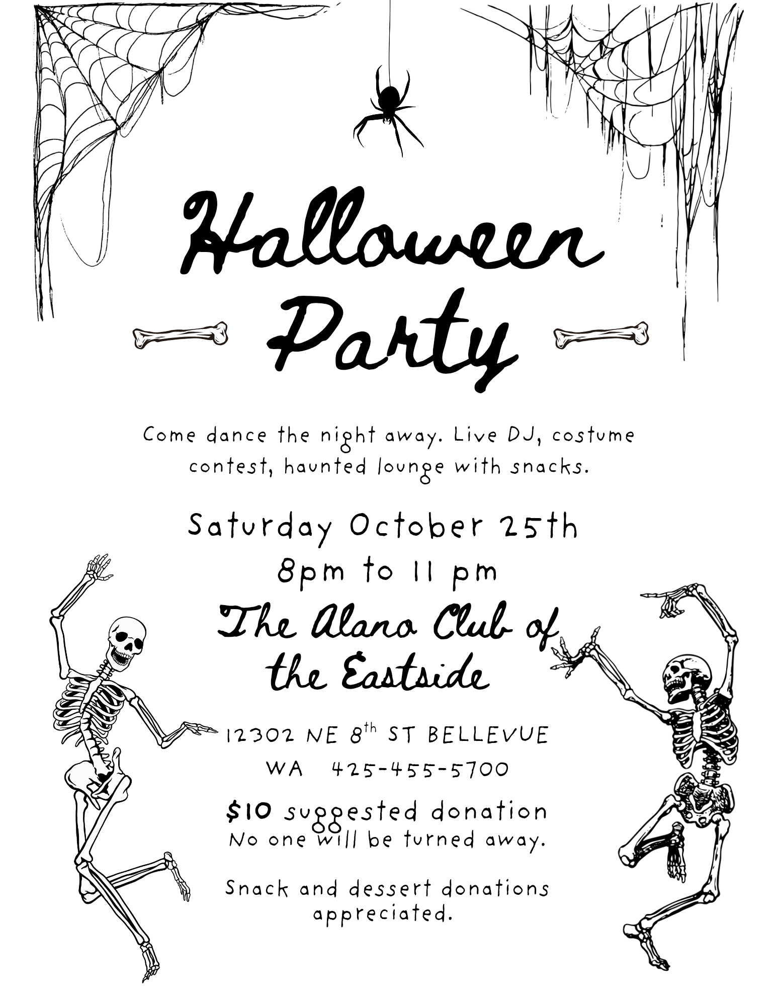 Join the Alano Club for some Halloween Fun! Come dance the night away! Live DJ, Costume contest, haunted lounge and snacks! Suggested donation of $10. Snack and dessert donations appreciated.
